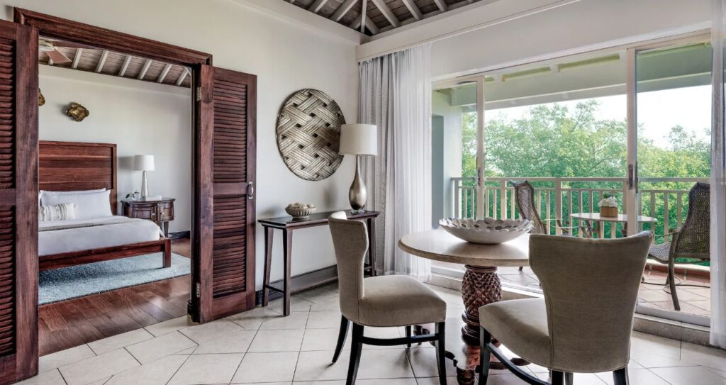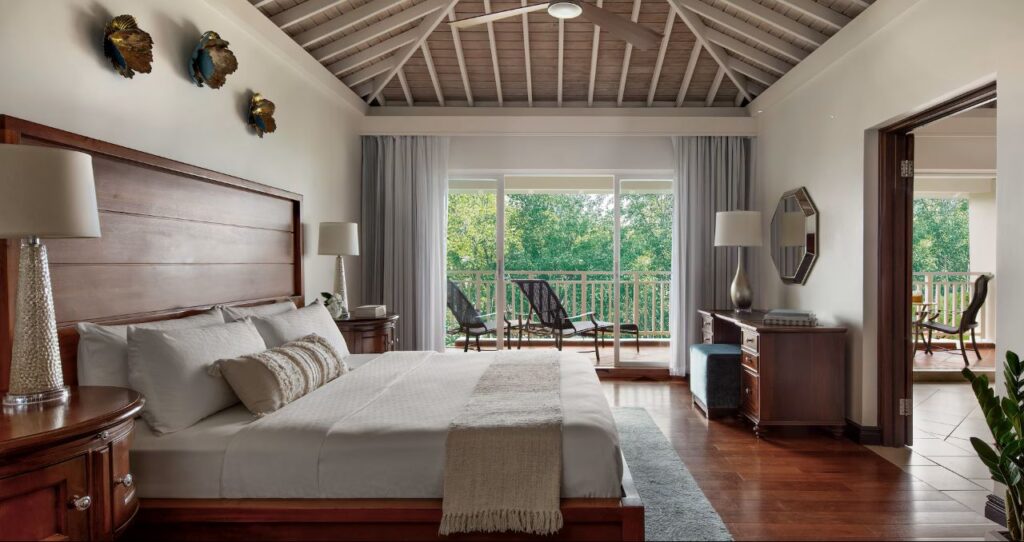 For peace, extra space, and personal butler service, consider the Caribbean Honeymoon One Bedroom Butler Suite w/ Tranquility Soaking Tub at Sandals Grande St. Lucian in St. Lucia.