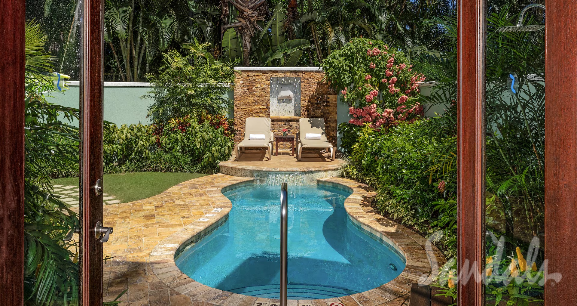 Enjoy plenty of space, tropical garden views, and personal butler service in the Palm Grove Penthouse One Bedroom Butler Suite at Sandals Negril in Jamaica. This elegant suite features a large private balcony with comfortable chairs and a table; a … Read More