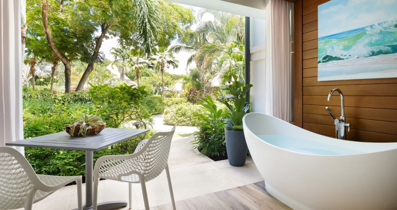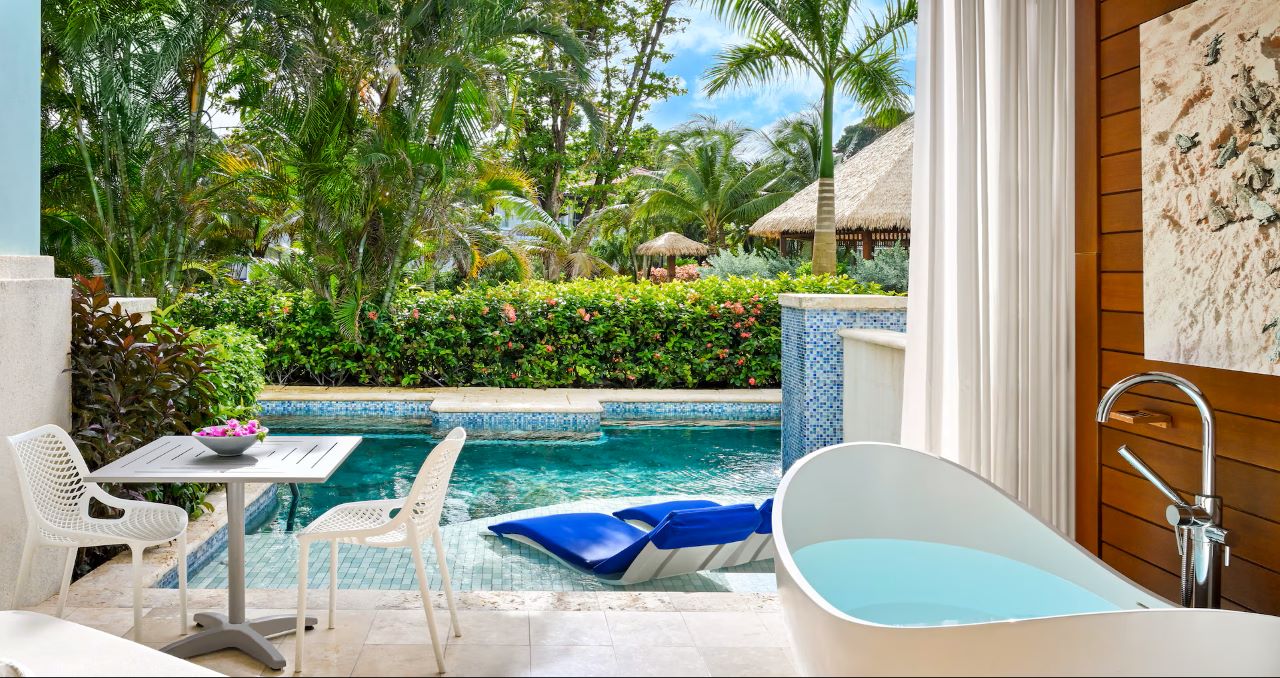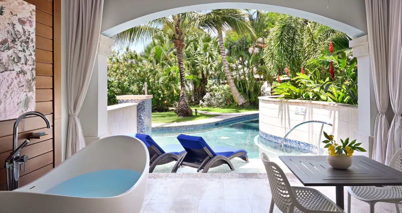 The Royal Seaside Swim-up Club Level Ultra Suite w/ Patio Tranquility Soaking Tub at Sandals Royal Barbados offers direct pool access plus extra amenities for a relaxing, fun stay. It features pool and tropical garden views from a private patio … Read More