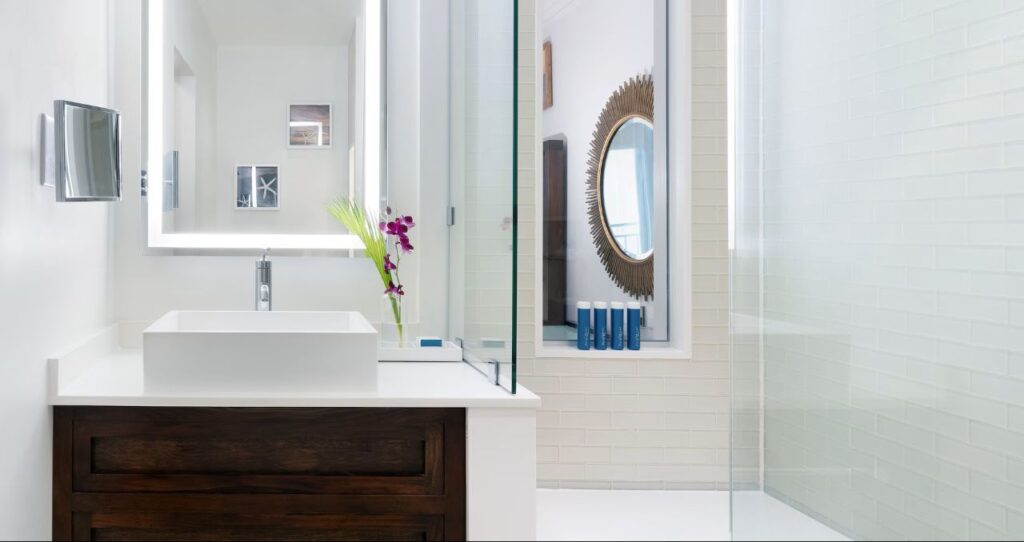 As a club level room, it includes a minibar that is refreshed daily and stocked with water, juice, soda, local beer, Robert Mondavi wines, and premium spirits. It also comes with extra amenities including robes in the room; access to the exclusive Club Sandals lounge; concierge service to help with making dinner, spa, and excursion reservations; and room service between 7am and 10pm.