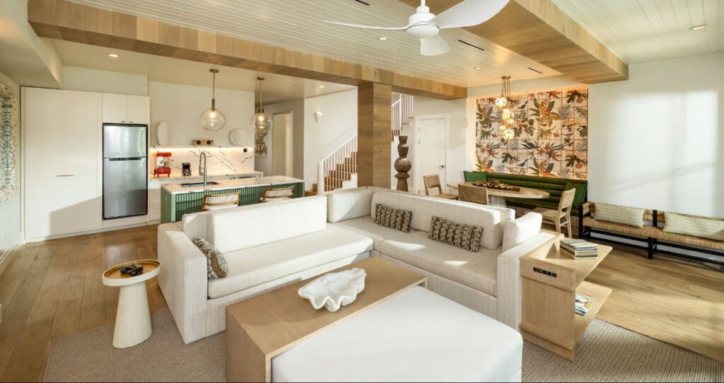 Accommodations have recently been renovated and range from entry level rooms that sleep four to family suites with extra amenities to four-bedroom villas and penthouses with personal butler service. All rooms have a private outdoor space and come with a fully stocked minibar.