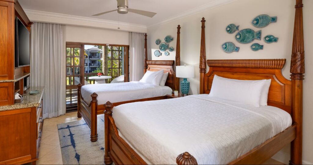 Accommodations have recently been renovated and range from entry level rooms that sleep four to family suites with extra amenities to four-bedroom villas and penthouses with personal butler service. All rooms have a private outdoor space and come with a fully stocked minibar.