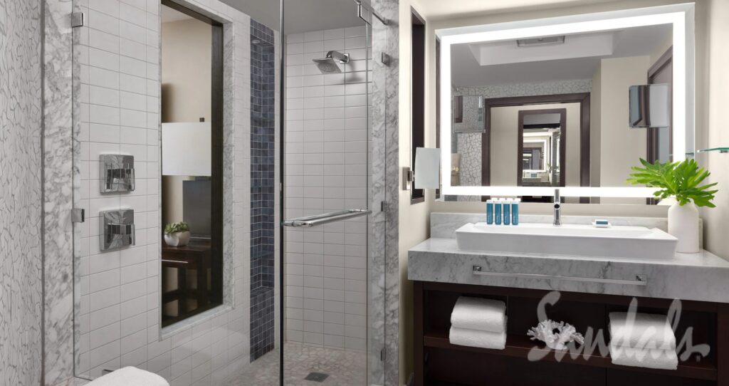 The beach is stunning, with crystal clear water and white sand, and there are plenty of chairs and umbrellas. We think it’s one of the best beaches of any Sandals resort. Scuba diving and snorkeling (which are complimentary, like at all Sandals resorts) are especially good here. Sandals Grenada is also one of the highest rated Sandals resorts.